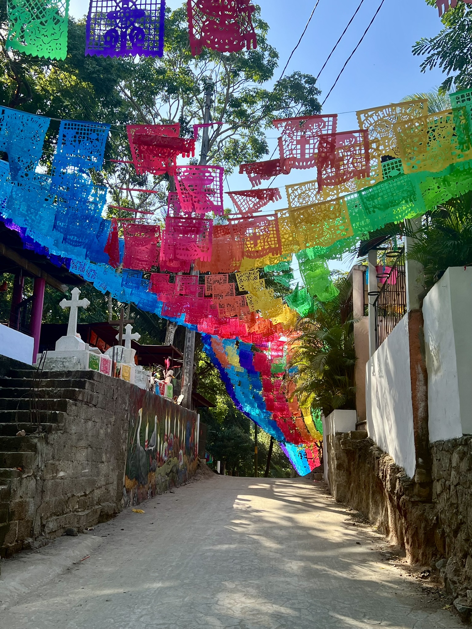 I will say, one hidden gem in Sayulita was Los Muertos beach. You walk through the cemetery to get here, and the walk itself was beautiful. This beach was calm enough for swimming, and had a nicer feel than the main beach of Sayulita, though because it’s surrounded by mountains, the sun disappeared around 4pm. I didn’t feel comfortable in swimming in the waves at either San Pancho’s main beach or Sayulita’s, and I’m a good swimmer. I also thought it was ridiculous that if you wanted a beach chair or umbrella, it was about $20 a day. I’m used to going to Zipolite where they are free as long as you’re ordering food or drinks from the restaurant.