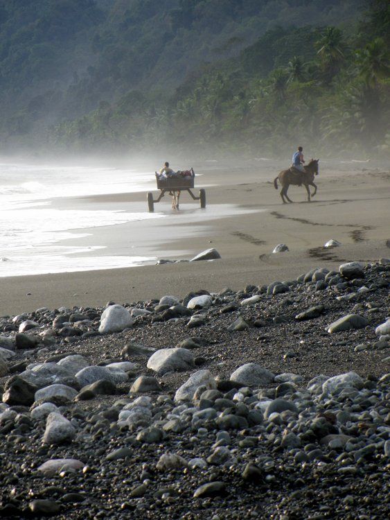 I took the adventurous route when I was here, taking a small plane to Puerto Jiminez, and then taking the collectivo to Carate (which was basically a long, adventurous ride in the back of a livestock truck down the worst bumpy road I’ve ever been on). Once you are here, if you are staying at La Leona, you are met with a horse-drawn cart which takes your luggage while you take a glorious 45 minute walk down the misty beach to get to the hotel.